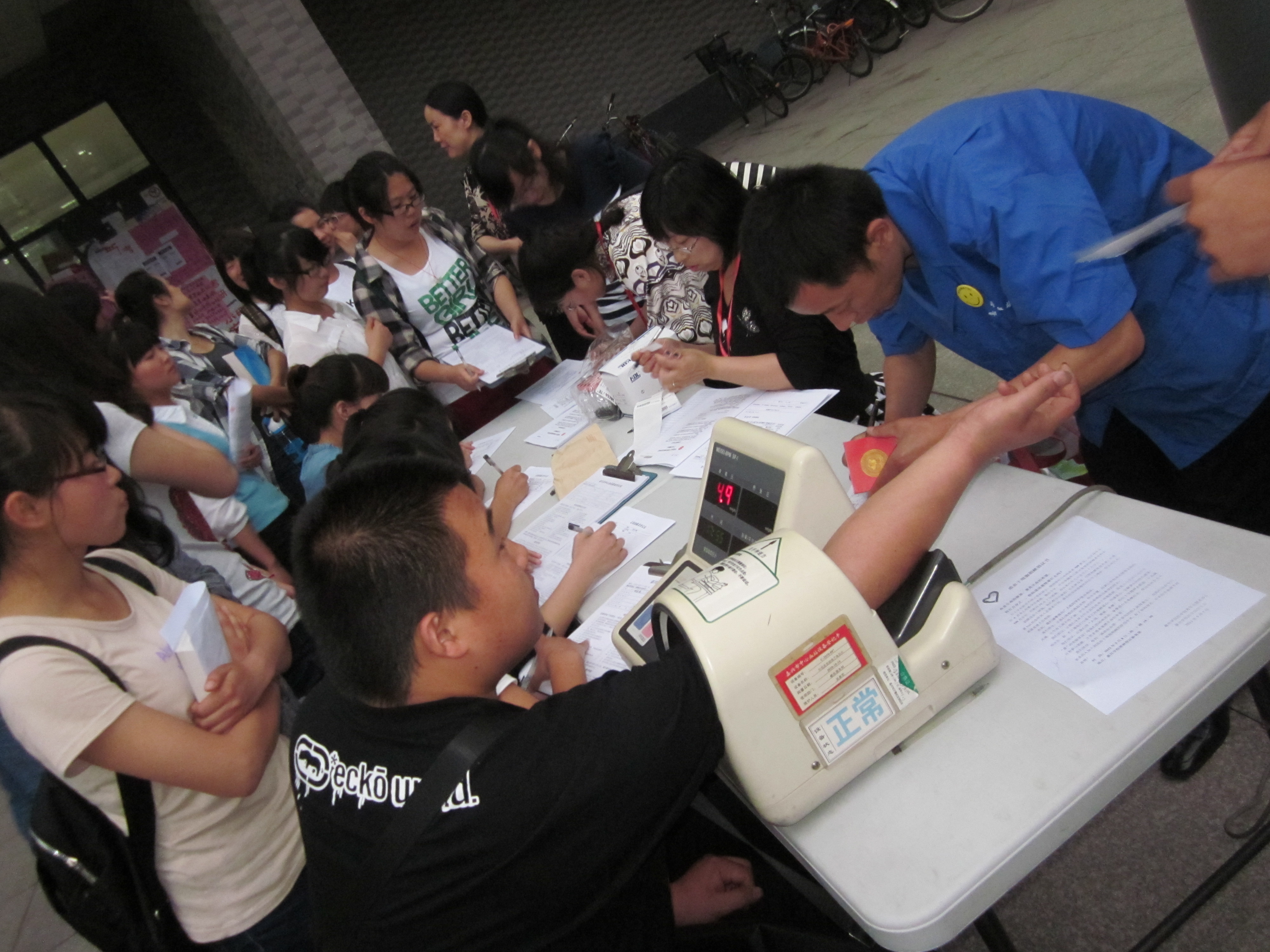 活动现场共有25名同学踊跃献出200ml血液,38名同学经抽取10ml血样无偿捐献造血干细胞,加上前天晚上献血的17名同学,目前共有55名同学志愿加入中华骨髓库。从献血车到捐献造血干细胞现场,处处上演着一幕幕爱心奉献的动人场景。