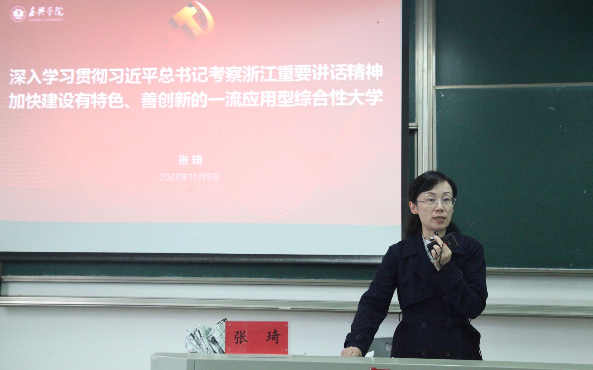 作主题为“深入学习贯彻习近平总书记考察浙江重要讲话精神 加快建设有特色、善创新的一流应用型综合性大学”宣讲报告会。院长何治主持报告会,学院党政班子成员、全体教职员工现场聆听。