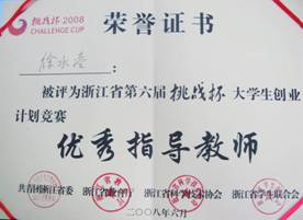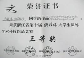 指导的学生作品获得浙江省“挑战杯”大学生科技竞赛特等奖、一等奖
