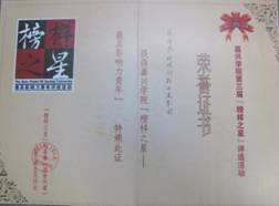 随着教研室创新型实验教学体系的建立和逐步完善,一系列教学、科研改革的开展,实验教学设施和条件的显著改善,激发了学生的学习兴趣,学生的实验操作技能和综合创新能力得到明显提高。7年来,在教研室老师不懈努力下,学生科技创新能力不断提升,先后指导学生申报立项浙江省大学生创新项目(新苗人才培养计划项目)7项,校重点SRT项目2项,一般SRT项目2项,指导学生发表学术论文14篇,其中一级杂志论文3篇,核心期刊论文8篇。指导学生获得浙江省大学生“挑战杯”竞赛特等奖1项,一等奖1项,三等奖2项;获得嘉兴市“星耀南湖”大学生青年创业竞赛三等奖1项;嘉兴学院校挑战杯特等奖1项,大学生“三下乡”暑期社会实践省优秀团队和校优秀团队各1项,学生科技创新团队获得嘉兴学院“榜样之星”称号。