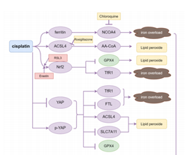 图1.铁死亡参与感音性耳聋的关键分子路径