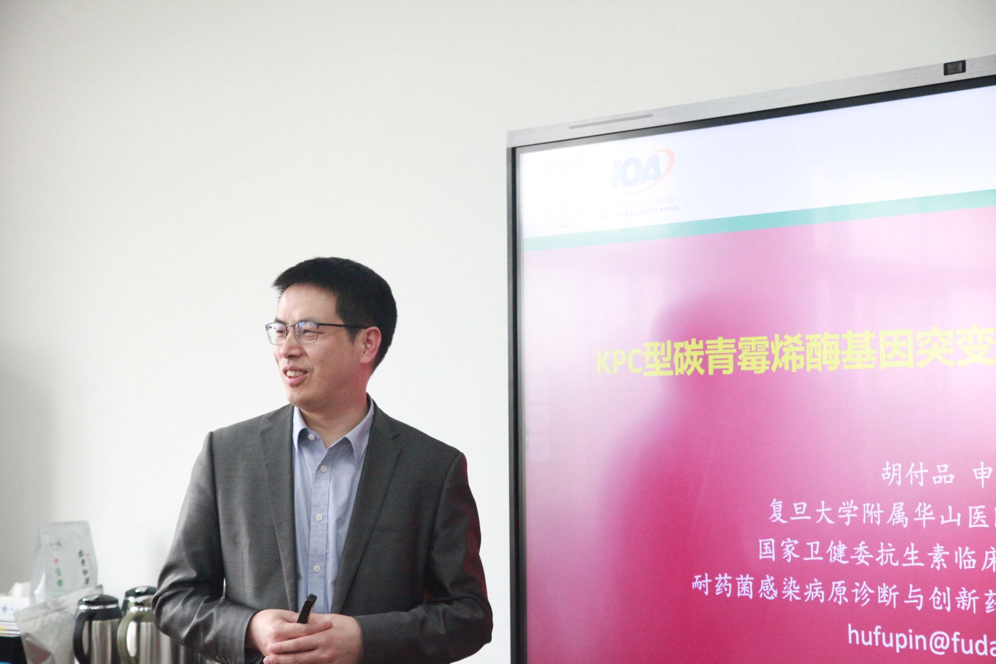 随后,胡付品研究员作了题为《KPC型青霉烯酸酶基因突变:全球公共卫生新挑战》的报告。从临床样本中细菌耐药的检出率、全球流行趋势、KPC突变及其突变的结构基础、遗传环境特征、诱发突变的危险因素以及治疗选择等多个维度分享了肺炎克雷伯菌KPC型的青霉烯酸酶突变在细菌耐药中的公共卫生问题以及耐药菌感染的精准治疗成果。