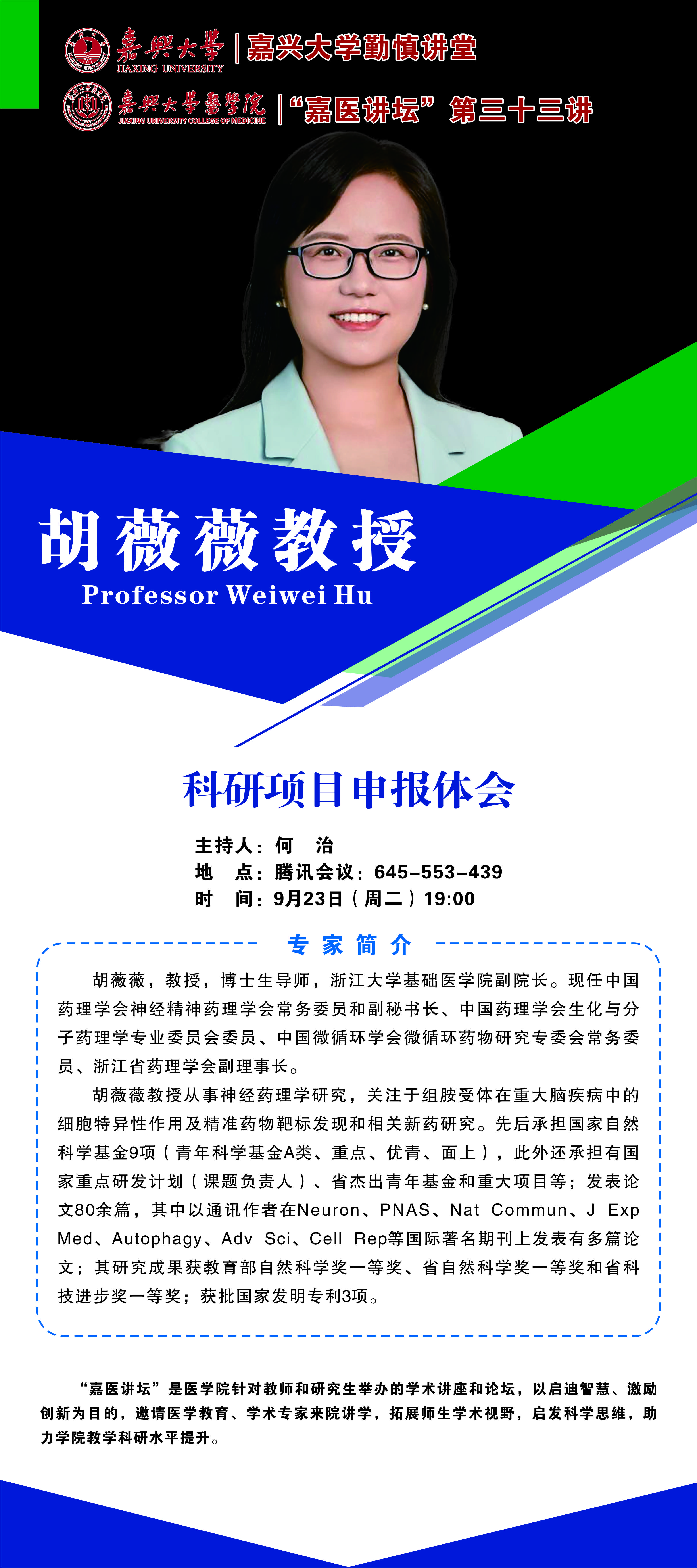 嘉医讲坛第三十三讲-胡薇薇教授