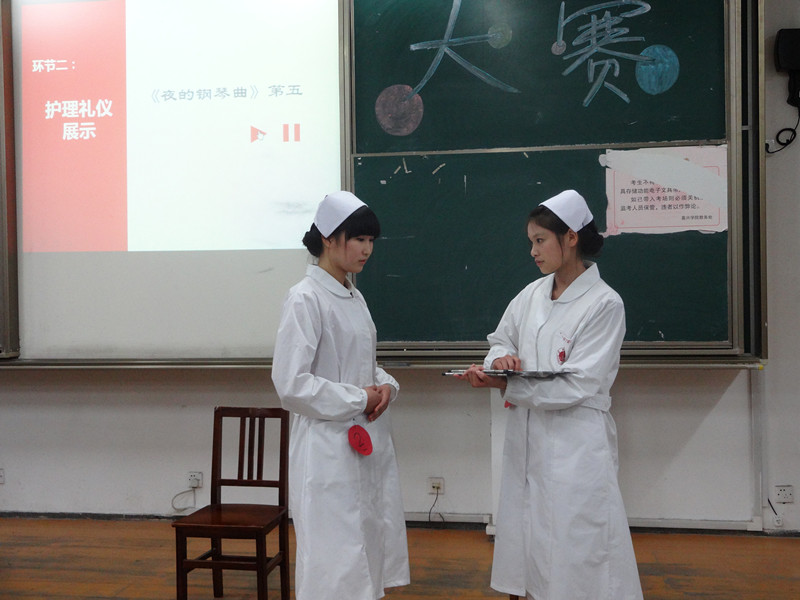 2014年“白衣天使大赛”决赛在梁林1号楼223教室拉开了帷幕。出席本次比赛的领导和评委有:护理系主任肖素香老师、学工办杨玲飞老师、团总支朱夏晖老师,嘉宾有上一届“白衣天使大赛”决赛冠军高佳和亚军陈咪和欧美无码
