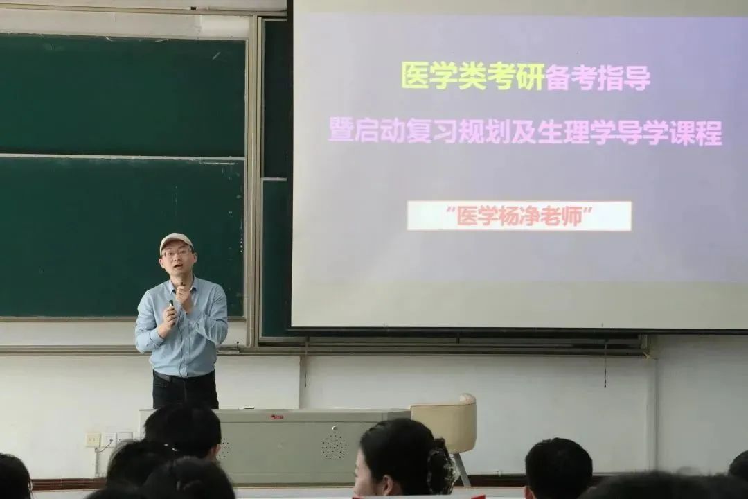 举办2024届考研学生指导讲座。新文道考研辅导专家、全国著名西医综合辅导专家、卫生部人民卫生出版社系列辅导用书主编、全国硕士研究生统一考试医学类辅导用书编委会常委杨净老师主讲。学院2024届考研学生代表到场聆听。