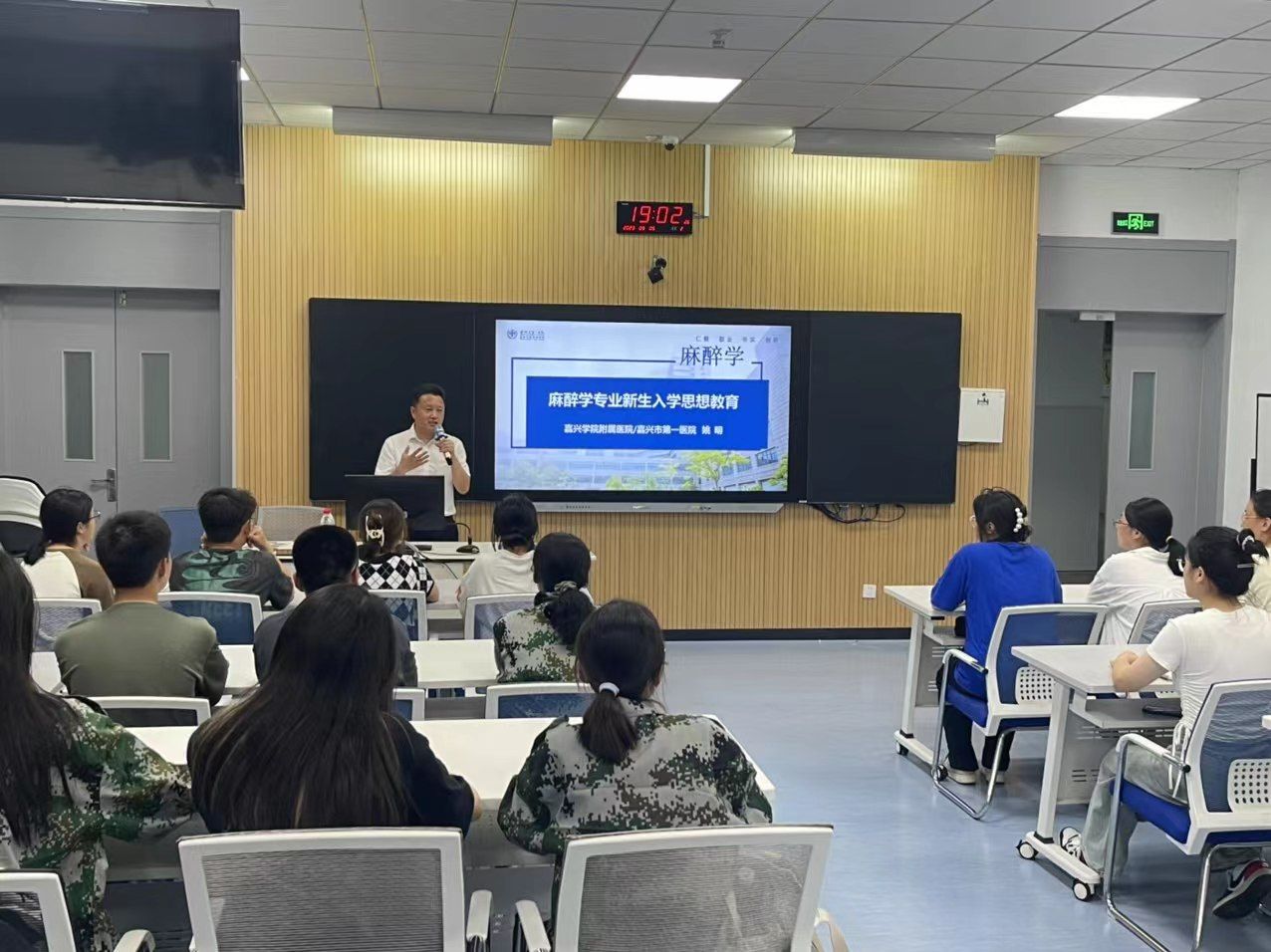 党委副书记李联钊老师主持,嘉兴学院附属医院、嘉兴市第一医院院长姚明教授主讲,麻醉学专业全体新生参加。