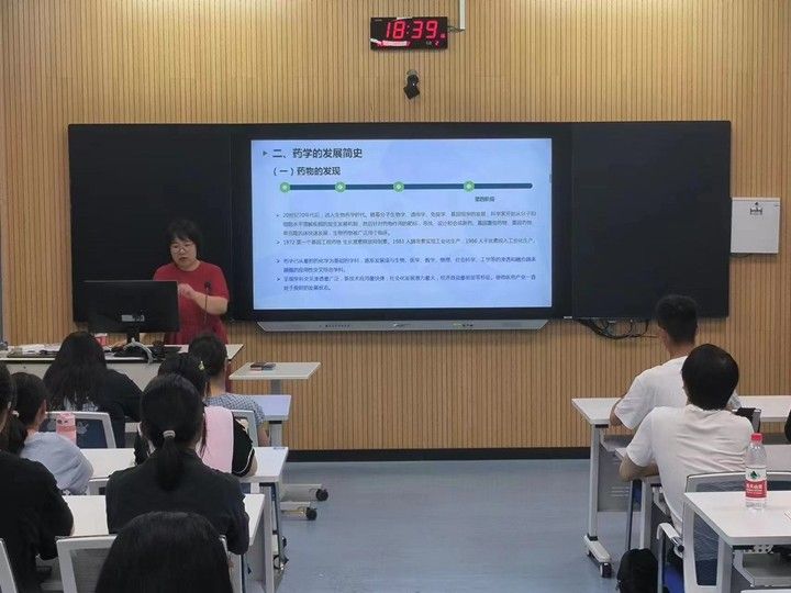 黄老师从药学的概念与特点、药物的发展简史、药学专业的就业趋势、药学人才应具备怎样的素质等几个方面阐述了药学专业这门学科。她鼓励同学们,医药产业是朝阳产业,药学专业毕业生就业前景光明,就业渠道广泛。同时她也叮嘱同学们,作为一名药学人才需要具备诚实、尊重、守信、责任这几项素质,努力做到“以真才实学服务人民,以创新创造贡献国家”。