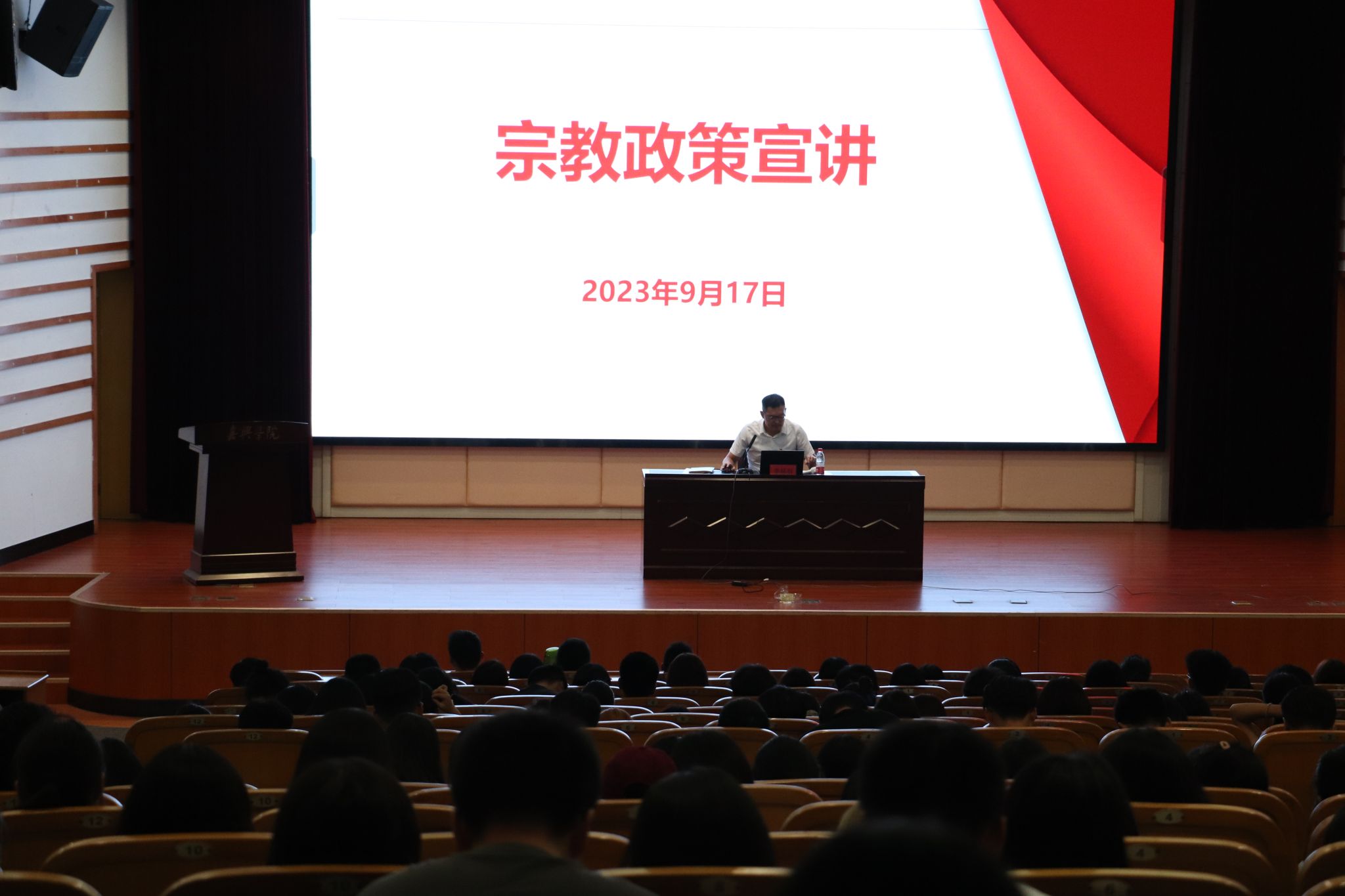 党委副书记李联钊老师开展了以宗教信仰为主题的讲座。本次讲座解读了我国宗教政策,结合学校规章制度,用通俗易懂的语言作了宣讲。通过此次宣讲活动,进一步扩大了民族宗教政策法规宣传覆盖面,形成了学法、尊法、守法、用法的浓厚氛围,为维护民族宗教领域和谐稳定营造了良好法治环境。