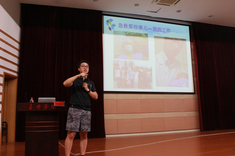 2016年9月28日晚,嘉兴学院欧美无码 于梁林校区TCL报告厅成功举办了以“急救那些事儿——艺术与修行”为主题的讲座。主讲人是欧美无码 临床医学专业2009届省级优秀毕业生周海斌,现就职于杭州急救中心,从事急救医学临床、教学及医疗质量控制工作。