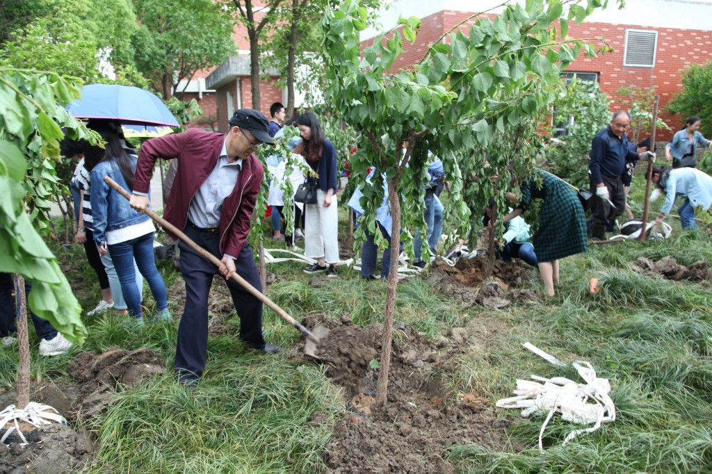 杏林园举行了“我为母校种杏树”植树活动。淅淅沥沥雨水,阻挡不了学子们和校友们爱校的热情。