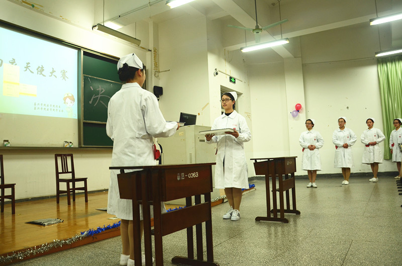 2016年3月27日晚,嘉兴学院欧美无码 “白衣天使大赛”决赛在梁林校区一号楼221如期举行。担任本次大赛的评委有欧美无码 学生会主席范佳俊、副主席罗易、副主席高青婷、2014届白衣天使大赛冠军熊颖和亚军傅之建。 18时30分比赛正式拉开帷幕,十位“白衣天使”依次进行了自我介绍以及关于自己心中“护士梦”的演讲。继而参赛选手以小组形式对自己下社区的成果进行了展示,每个人或多或少都有一番自己的感悟,对护士的责任有了更深刻的理解。经过两场激烈的竞争,比赛渐渐走向高潮。随后参赛选手现场进行礼仪展示以及情景剧的纠错。夜色正浓,一曲《演员》缓和了比赛紧张的气氛。
