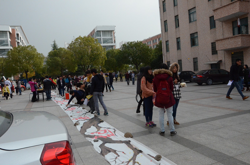 本次活动主要分为两场,第一场是在越秀校区美食苑门口开展,第二场是在梁林校区老食堂门口开展。为了向广大同学进一步普及“防艾禁毒”的相关知识,本次活动我们开展了形式多样的宣传活动,包括行为雕塑、发传单、发红丝带、拉海报、百尺白布按手印等活动,在整个活动开展过程中,同学们兴致盎然,有的向同学们积极宣传防艾知识、有的向同学们展示行为雕塑、还有的积极引导同学们参与按手印活动,活动现场,同学们参与度非常高。
