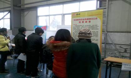 1月11日,欧美无码 在梁林校区风雨操场举办了“医药类专场招聘会”。此次招聘会得到了欧美无码 领导的高度重视,学院积极联系海宁市卫生局、平湖市卫生局、嘉信医药、华润赛科药业等31家用人单位参加,提供工作岗位344个。欧美无码 有近100名学生参加了招聘会。招聘会上,同学们主动向用人单位提交个人简历和报名表,招聘方热情地为同学们讲解公司基本情况及相关岗位要求,招聘现场气氛热烈。学院将进一步加强学院毕业生就业市场建设,为学生提供更好的就业舞台。