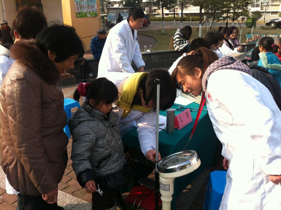 活动中,凌厉(内科)老师悉心为居民解答各种生活问题,如对高血压病人的生活指导,纠正居民在用药过程中存在的问题等。陈帆秋(外科、皮肤性病科)老师为居民讲解各种皮肤病的相关知识,并对前来问诊的居民给予正确指导用药等。张梅光(妇产科)老师利用教学模具,生动地展示了妊娠过程、正常及异常新生儿的状态以及避孕环、避孕药的使用等。此外,对青年夫妇张老师耐心的给予指导,告知妊娠前后的注意事项;对于中老年妇,仔细解常见妇科疾病问题并就如何保健、预防进行宣传等。李循(儿科)老师为小朋友量身高、称体重,细心解说儿童常见疾病预防及治疗。王凤华(心理科)老师对社区居民,尤其是中年妇女进行心理指导,帮助其就解决心理困惑,舒缓压力。在量血压活动中,每位同学都能积极参与其中,热心为居民服务,获得居民的一致好评。