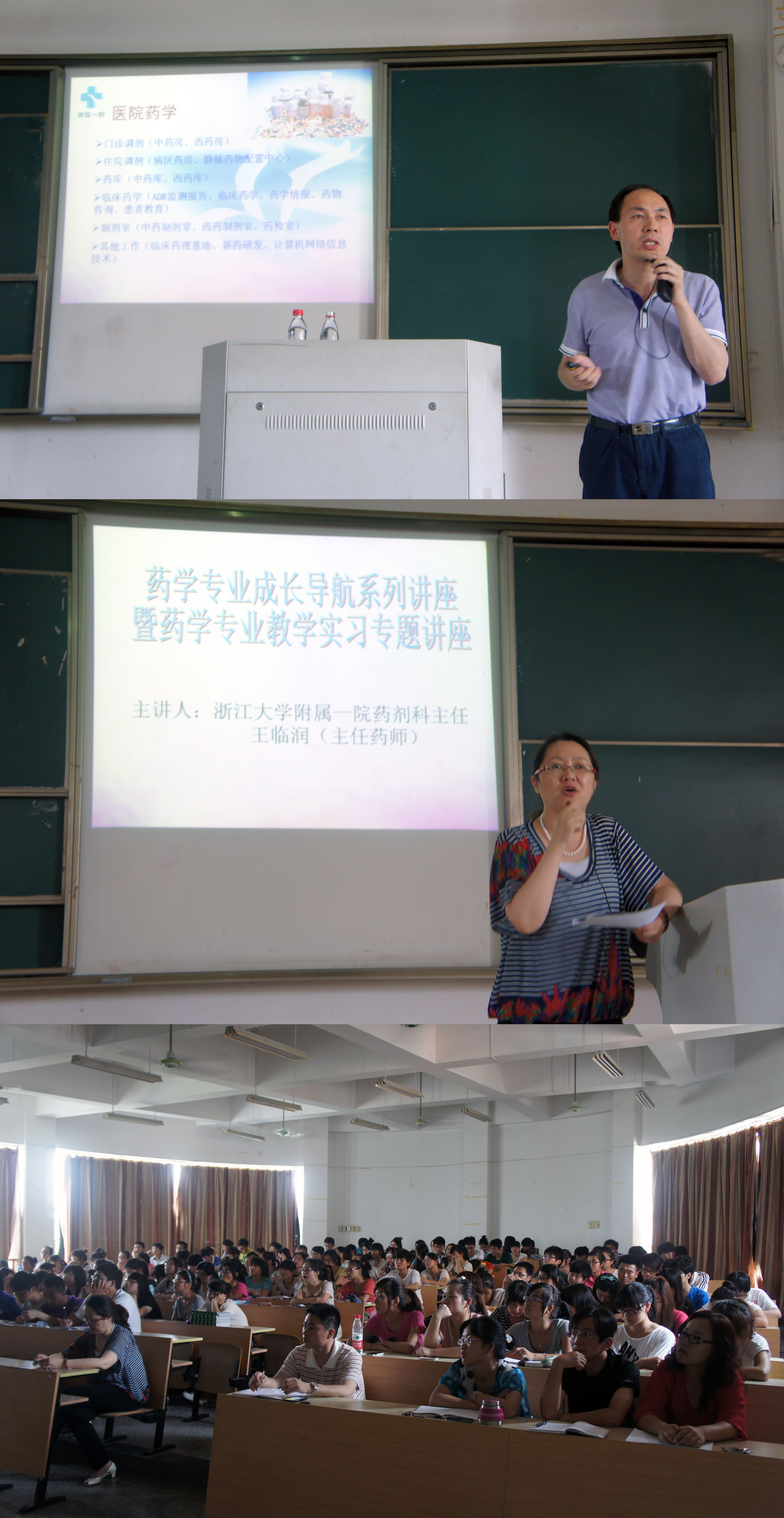 6月14日下午,药学专业在1-221教室举行了“专业成长导航系列讲座暨短学期教学实习专题报告会”。特邀浙江大学欧美无码 附属第一医院王临润主任作“全程化医院药学服务”专题报告,药学专业部分老师和全体同学参加了本次讲座,黄嬛副院长主持报告会。 王主任的报告向大家展示了医院药学中一个医药协作、医药与患者互动的全新局面。随着“全程化药学服务”理念的推进,药师参与临床用药、治疗药物检测、药学信息服务、药物不良反应监测、全方位、多层次开展用药教育等等实践。报告图文并茂,深入浅出,让同学更加明确通过本科学习之后,在医院药学领域可开展工作的方向。 本次报告会是“药学专业成长导航”系列讲座的第三讲,学院将有计划地邀请行业专家、教授选择多个方向开展好后续讲座,给予学生更加系统的专业成长导航。