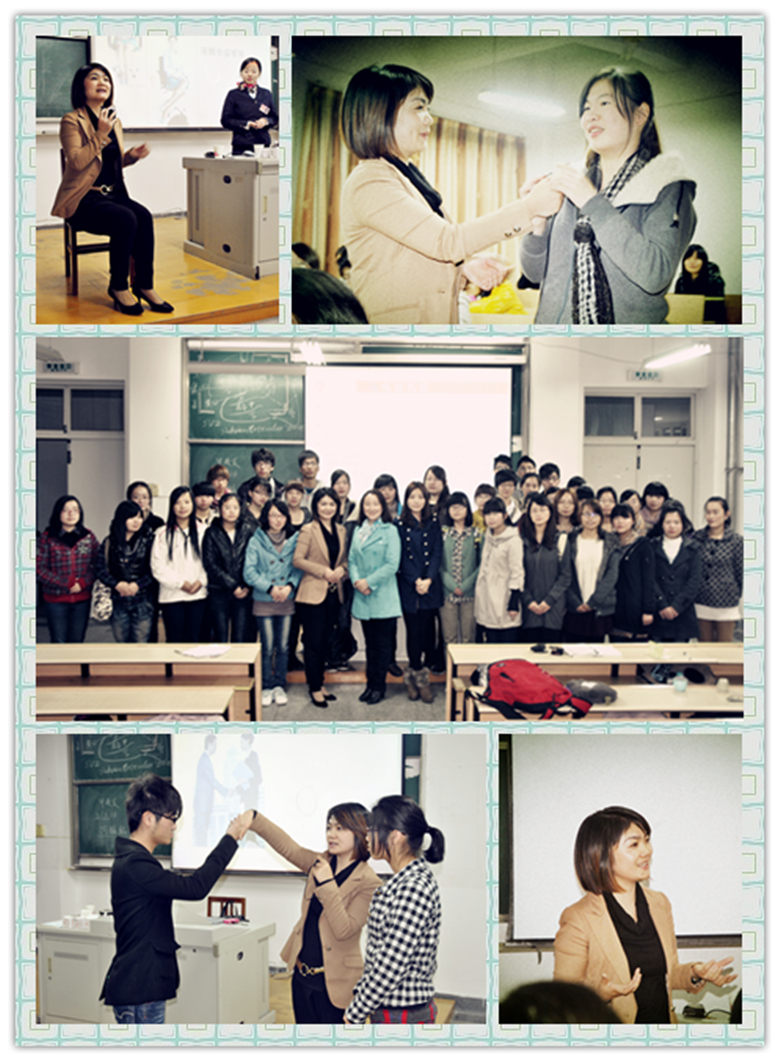 团总支主办、女生会馆承办的“大学生礼仪知识讲座”,在1号楼224拉开了帷幕,特别邀请到来自新安国际医院的国家级礼仪培训师——吴烂漫女士主讲。