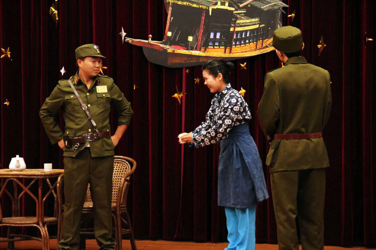 在一首耳熟能详的大合唱《共产党来了苦变甜》歌声中,晚会正式开始。它承载了我们对共产党的感谢之情。诗朗诵《祖国啊,我爱你》诠释了祖国的雄伟与壮丽,勾起了在场的各位同学强烈的爱国主义情怀。舞蹈《在灿烂的阳光下》、红歌串烧、京剧《沙家浜》等一个个精彩的节目,无不诠释着80、90的大学生们对党的崇敬与敬意。最让人眼前一亮的莫过于78岁的老红军——王雄爷爷慷慨激昂的独唱,充分表现了老一辈革命者顽强的斗志以及崇高的革命精神。把会场带入一个又一个的高潮。