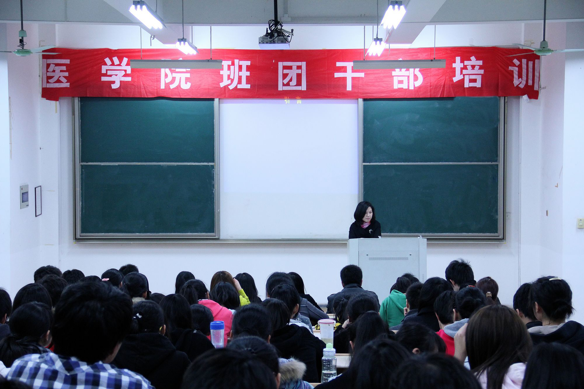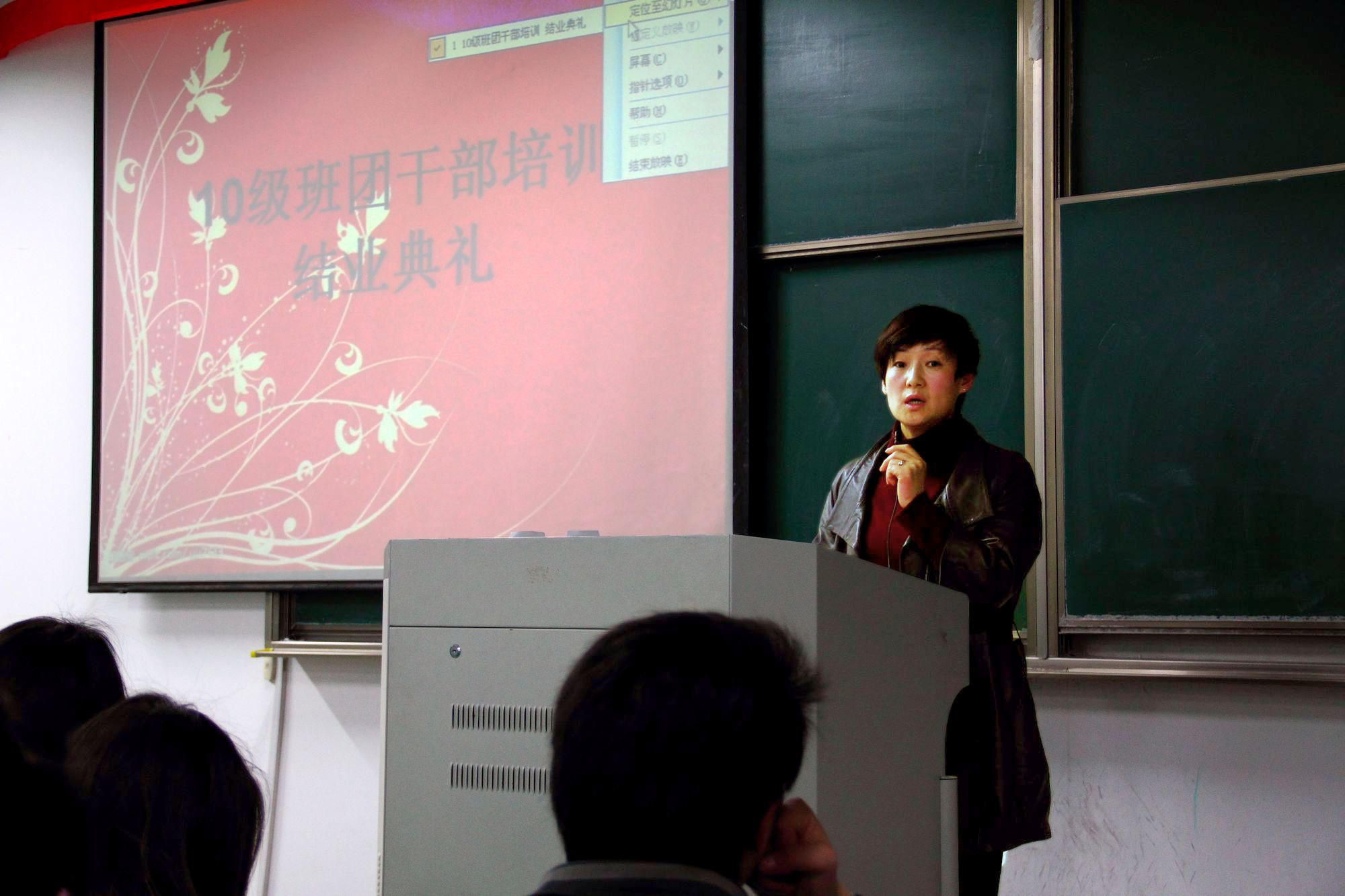 在第一教学楼221教室举办了2010级班团干部培训班开班仪式,学工办、团总支相关老师及10级172名班团干部参加了培训。培训班由团总支书记赵丽萍老师主持,校团委书记陈立力老师受邀出席培训班并做题为“学生干部可持续成长的方法论思考”的专题报告。报告从“大学生可持续成长的思考”、“学生干部成长的规律体系的探索”和“我校共青团工作的思考”等方面阐述了学生干部的重要性,内容翔实,具有很强的启发意义。