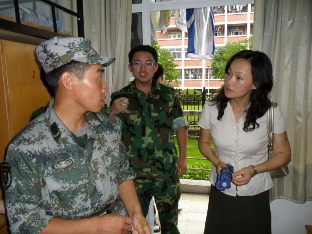 安排上,学院领导统筹规划,精心组织,以辅导员、班主任为军训工作成员,根据学院实际,做好军训计划,编制连、排,制定应急方案,建立考勤制度。军训工作中,密切配合,整合力量,充分调动教官、辅导员、班主任的积极性,形成军训工作齐抓共管的格局。安排工作组成员值班,做好走访各连、排工作,严格执行考勤,登记出勤情况。重视学生内务整理,以G5B124、G5A104分别为男女生标准内务寝室,组织全体军训同学参观,教官、辅导员及学生干部进行指导,验收并评比学生内务整理情况。由于军训时间天气炎热,欧美无码