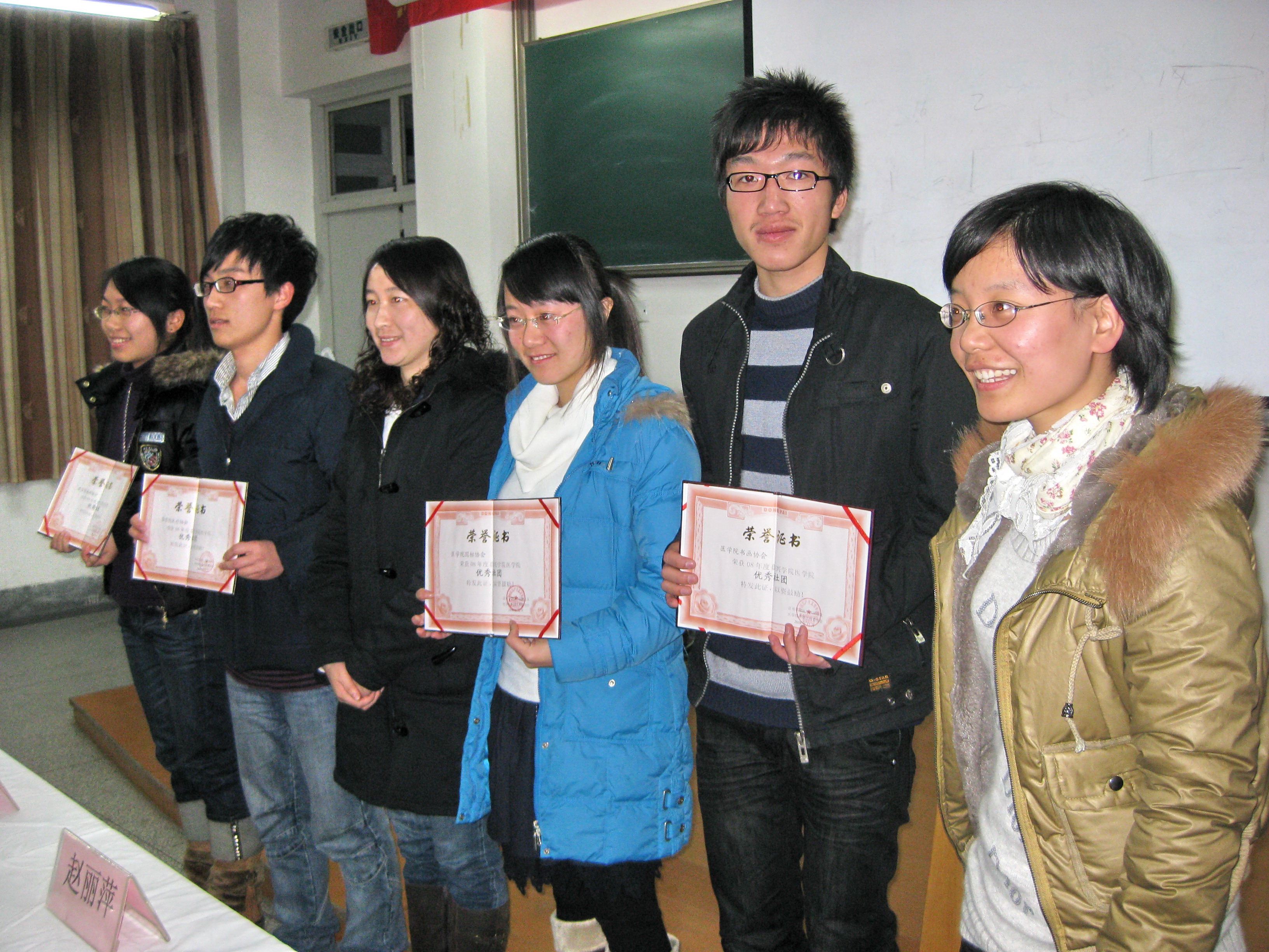 嘉兴学院欧美无码 会徽发布、表彰大会暨第五届社团文化月闭幕式于2008年12月17日晚6点半在第四教学楼424教室召开,该项活动由社工委副主席潘铤同学主持,欧美无码 党总支副书记谢宏、团总支书记赵丽萍、社工委秘书长江欢出席。 在大会上,14个协会分别展示了各自的会徽,每一个都设计得别有特点,个性突出,蕴含着协会成员的精巧构思,展现了欧美无码 大学生积极向上的精神面貌和朝气蓬勃的青春活力。会徽发布完毕后,由江欢老师致第五届社团文化月闭幕辞,回顾了这一年来社团开展的工作。赵丽萍老师宣读了本届获得 “精品社团”和“优秀社团”的名单。其中笛萧协会、科技协会荣获了“精品社团”称号,书画协会、英语协会、医疗协会和国标协会荣获“优秀社团”的称号。 最后,闭幕式在谢宏副书记的总结讲话中圆满结束。谢老师对社团寄予了期望,并表示学院层面会大力支持学生社团的健康发展。