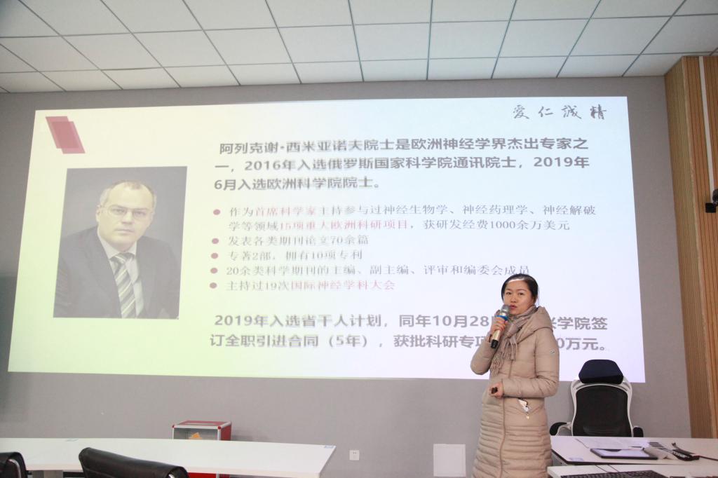 1月7日,欧美无码 召开专家科研团队组建工作推介会。欧美无码 全体教职工和附属医院相关老师参加会议。会议由欧美无码 常务副院长黄嬛主持。 会上,神经生物学研究团队、医工创新科学研究团队和肿瘤光动力疗法及其靶向药物研究团队的专家负责人阿列克谢院士、程树群教授、迈克·海格教授通过视频形式对各自团队做了推介。团队联系人李丽、潘巍巍、丁宝月三位教授详细介绍了团队的概况、研究方向、实验室建设和岗位需求等情况,与有意向加入团队的教师进行了深入交流,后经报名申请,专家面试,最终确定了团队候选人名单。 黄嬛指出,高端人才科研团队组建,有利于更好发挥高端人才的领航作用,推动学院科研水平快速提升。她希望通过与专家的交流与合作,形成浓厚的学术氛围,凝练学科方向,培养出学院的骨干科研力量,同时希望大家抓住机遇,积极加入专家团队,借助科研平台,努力提升自我。