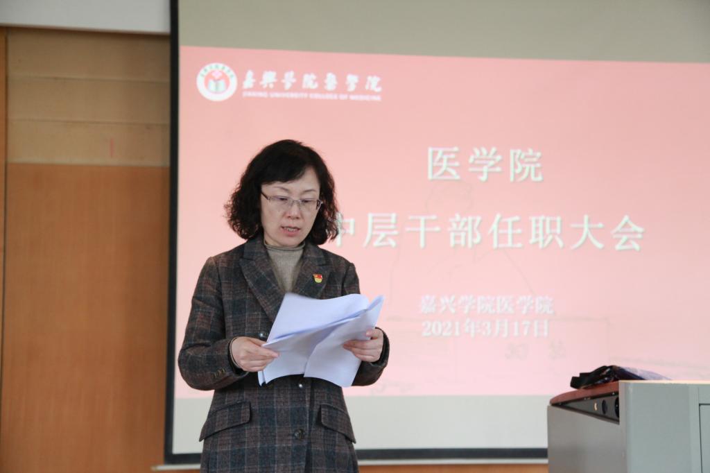会上,张校长宣读了中层干部任命文件,任命潘巍巍同志为欧美无码 党委委员、副院长,李联钊同志为欧美无码 党委委员、副书记。她提出几点要求和希望:一是要加强学习,提高任职履职能力;二是要增强团结协作精神,齐心协力推动学院事业快速健康发展;三是要提高服务意识,服务好每一个师生员工;四是要坚持改革创新,以开放包容的态度接受新事物,抓住每一个机遇。