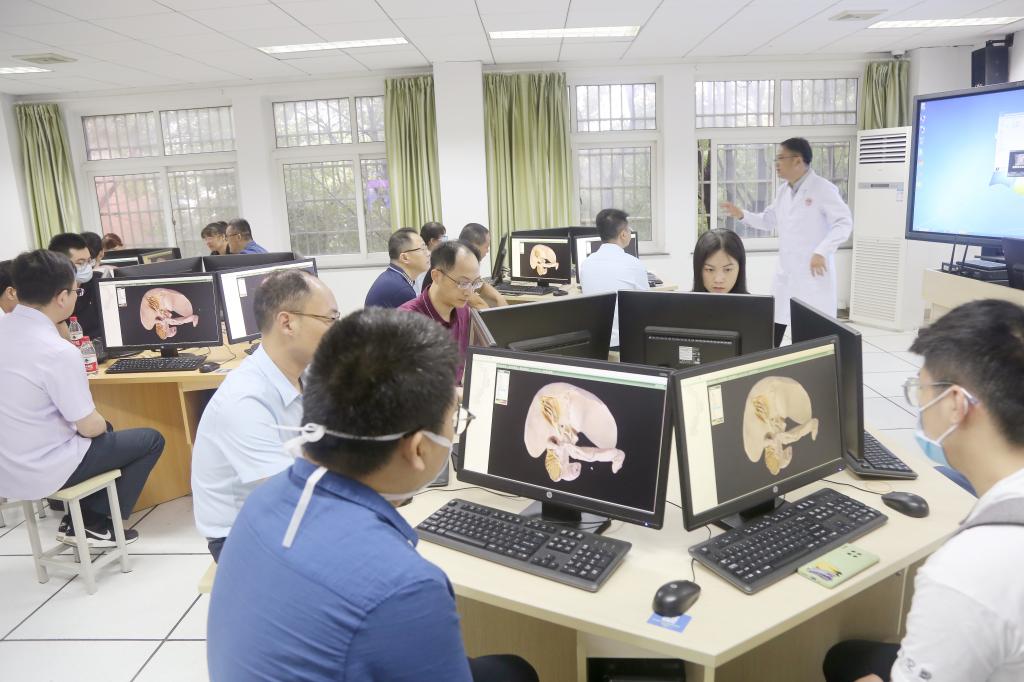培训班采用理论培训与实际操作相结合的方式。理论培训主要包括“实验室安全与解剖伦理学概论”“临床应用解剖专题”两部分内容,由欧美无码 医学实验中心主任蒋小红和临床医学部主任解剖学教授沈忠飞主讲。实际操作包括基础解剖操作20项、模拟手术10项,由欧美无码 相关教师和附属医院资深医生讲解指导。通过三天的紧张学习,学员们进一步夯实了临床解剖学基础,提升了理论与实践相结合的能力,同时,也充分领略了省级实验教学示范中心——我校医学虚拟仿真实验教学中心教育教学信息化、网络化、数字化的魅力。