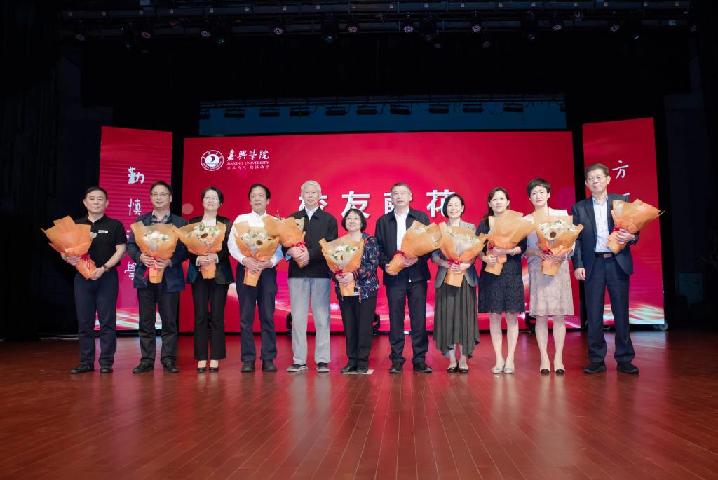 献花环节,校友代表登上舞台为11位原嘉兴卫校教师代表献上鲜花,芬芳的鲜花、深深的鞠躬和祝福的话语表达了广大毕业生对母校老师的浓浓情谊和美好祝福。