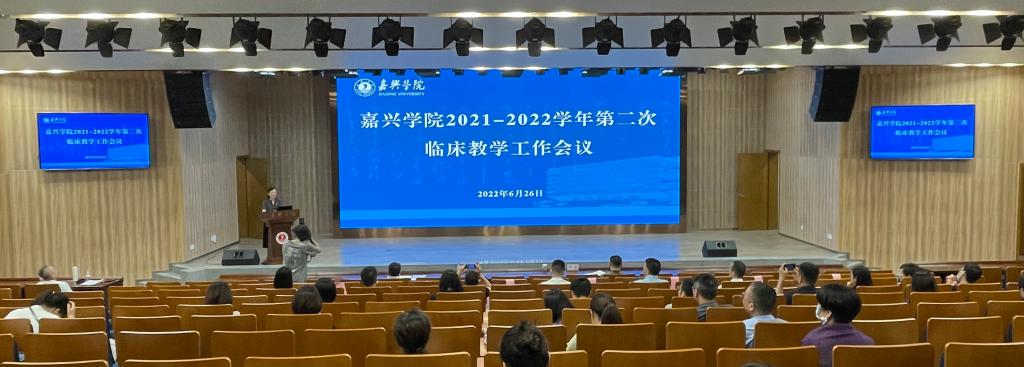 6月26日下午,嘉兴学院2021-2022学年第二次临床教学工作会议在图书馆学术报告厅召开。党委委员、副校长(主持日常工作)胡俊云,党委委员、副校长张琦,市卫健委副主任李金大、市教育局副局长闻泉新出席会议,会议由欧美无码