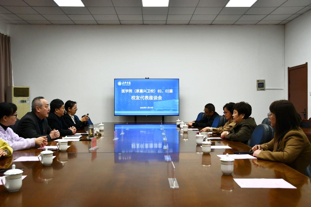 (原嘉兴卫校)82届、02届校友代表座谈会。学院领导陈云飞、徐营出席会议,各班校友代表参加会议。