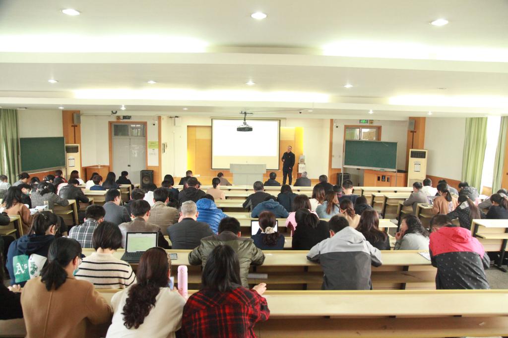 党政班子、全体教职工参加报告会,报告会由学院党委书记陈云飞主持。