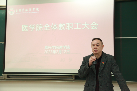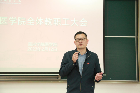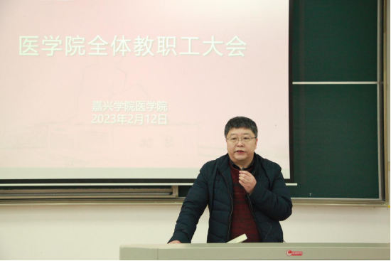 党委书记陈云飞通报了学院新的一年人才引进计划。他表示,新的一年,学院将继续增加医学人才引进力度,采取多项措施落实人才引进工作。陈云飞还就新学期重点工作提出要求,他强调,要保持良好的精神状态,全力做好临床医学专业认证迎评,积极启动药学专业认证工作、学位点申报工作以及科研项目的申报,同时强调加强学院的安全稳定工作,切实保障学生的就业率和就业质量。最后要求,2023年要紧紧围绕党的二十大精神学习,不断加强党的组织建设和师生员工的政治理论学习。