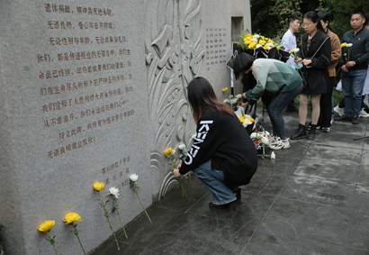 师生代表将手中的黄白菊花一一放在无语良师碑前,深情注视着每一位无语良师的名字,以敬畏之心瞻仰无语良师纪念碑。寄语当下,逐梦未来。“大爱无疆”“永远怀念您为我们做的一切”......一株株柏树上悬挂着欧美无码