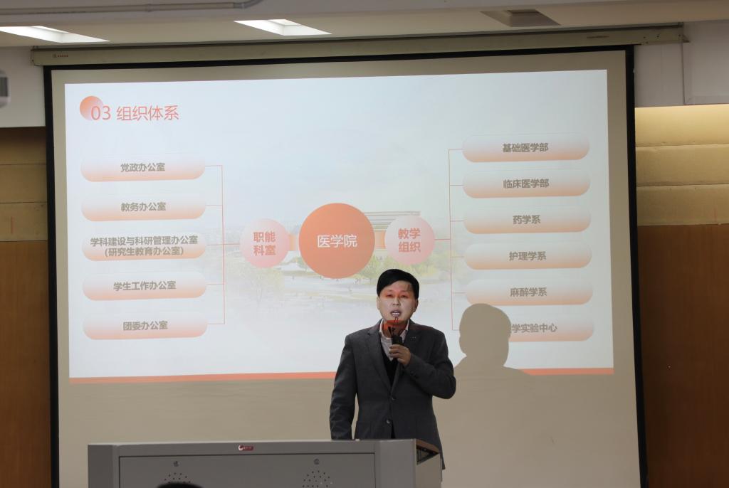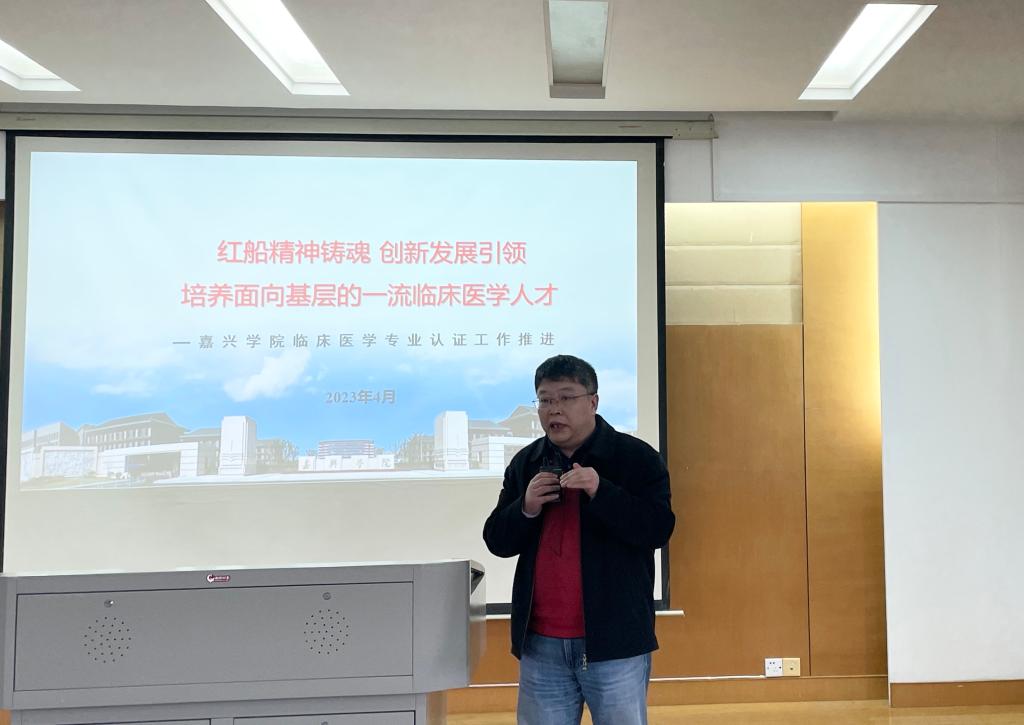 教学副院长、临床医学专业负责人徐营就临床医学专业认证相关知识及注意事项,对全院教职工作全面培训。他表示,全院教职工要深刻认识到专业认证重要性,学院的发展离不开全体教职工的积极参与,要以临床医学专业认证为契机,以评促建,以评促改,推动医学教育创新发展。