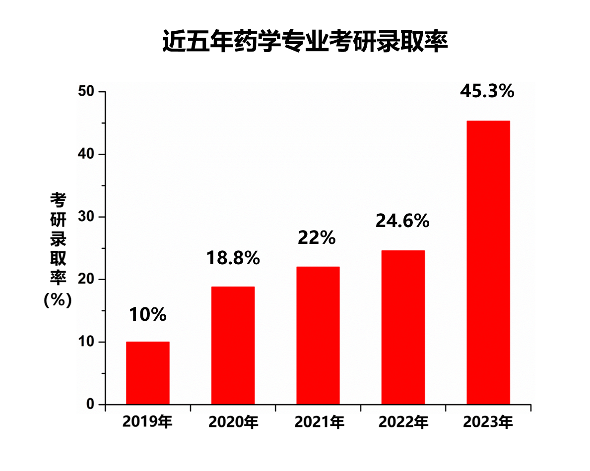 药学专业考研捷报频传。2023届本科毕业生共有64人,考研上线29人,拟录取29人,考研录取率高达45.3%,实现大跨步提升!录取人数和录取率均创历史新高,多名学生被中国药科大学、华东理工大学、沈阳药科大学等国内知名高校录取。