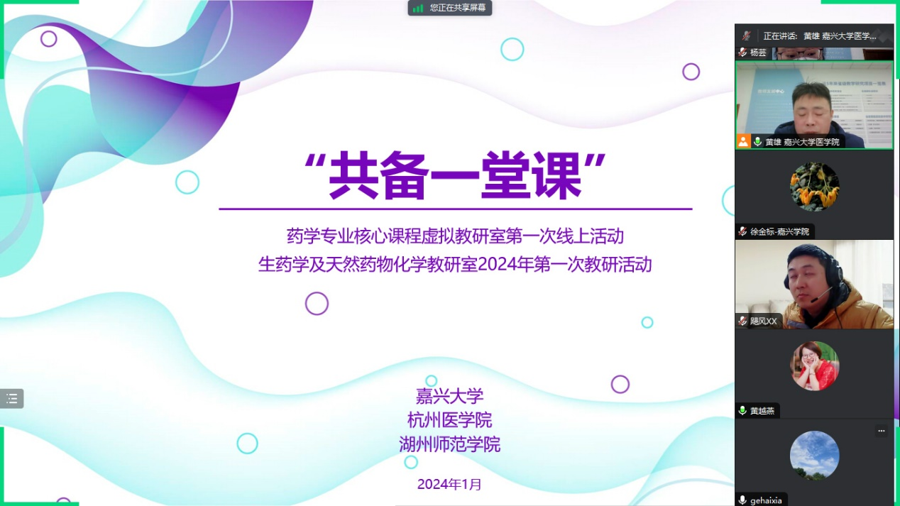 陶老师和湖州师范学院葛老师分别分享了他们在天然药物化学课程建设方面的经验。此外,虚拟教研活动还就《天然药物化学》教学大纲设置、教材内容、课时安排与学生接收能力的挑战等问题展开了热烈的讨论。