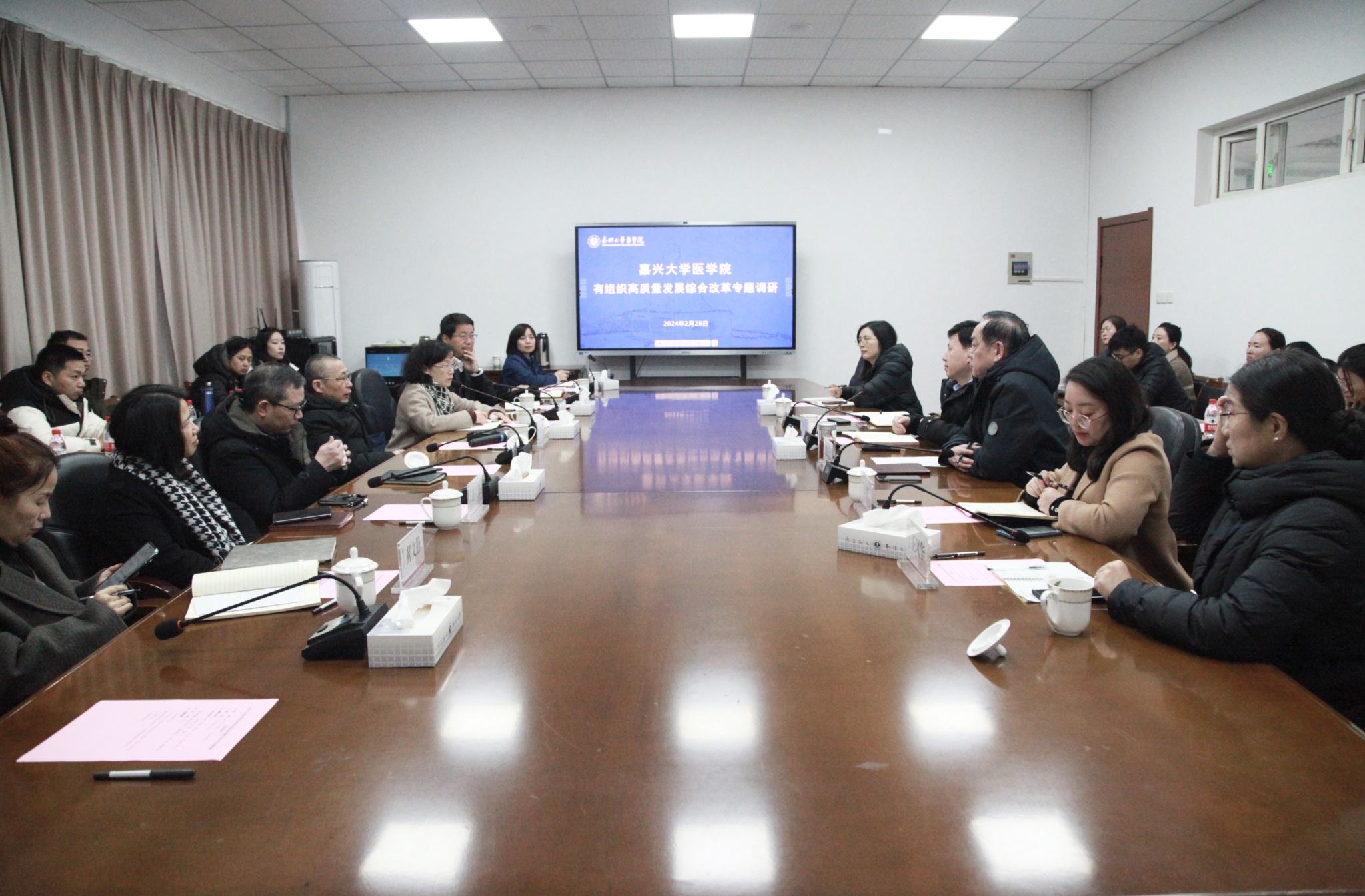 周宏伟副校长、於建明副校长分别就学院发展的硬件支持、资源保障和科研团队建设、基金项目申报、硕士点申报等工作一一回应学院诉求。