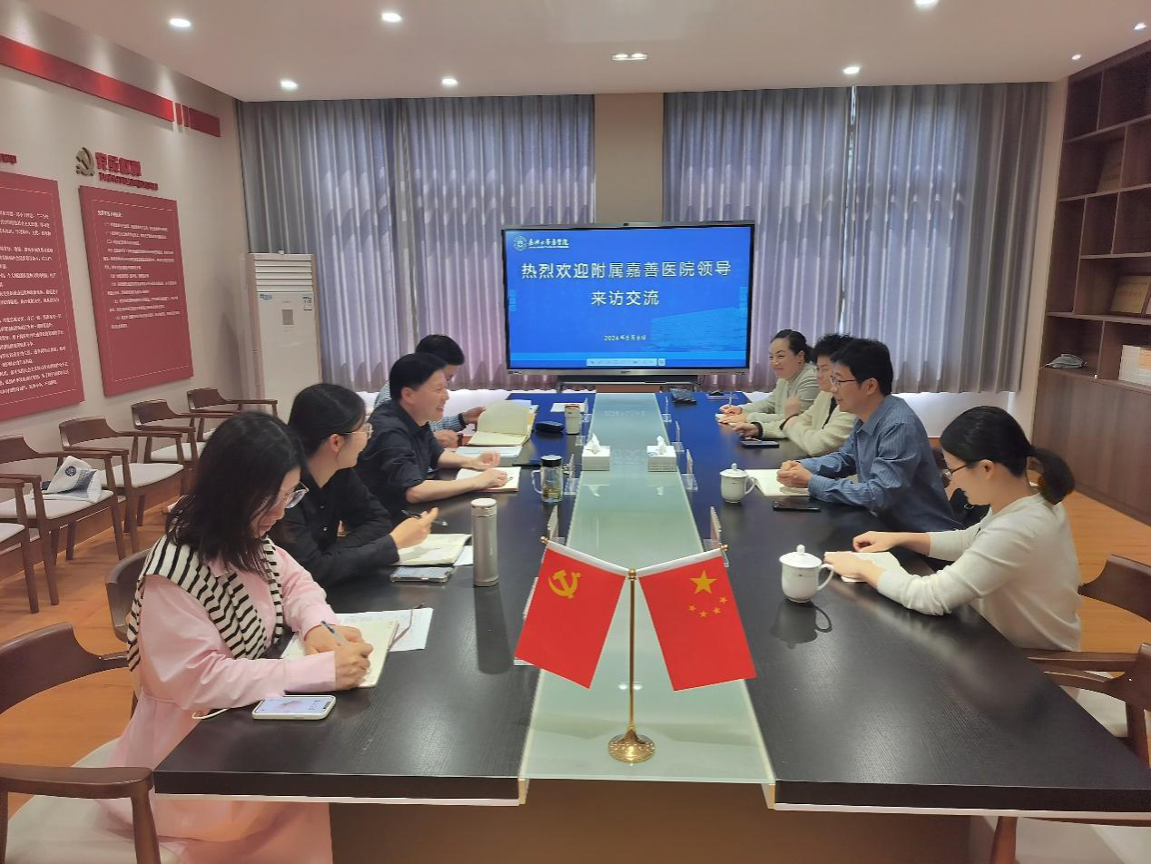 5月6日下午,附属嘉善医院副院长朱敏刚一行来欧美无码 交流。欧美无码 院长何治,副院长王敏、孙李丹出席座谈会。