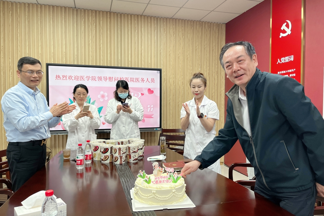 为纪念第113个“5·12”国际护士节,传承南丁格尔精神,弘扬优质护理文化,5月11日下午,医学院党委书记陈云飞到校医院慰问全体医务人员。