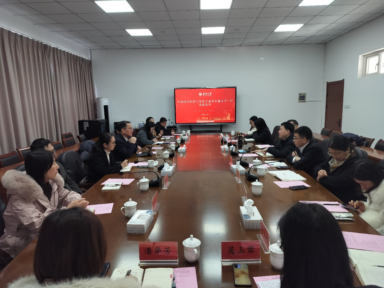 1月22日,杭州师范大学医学部部长施军平一行来欧美无码 交流,欧美无码 院长何治、副院长王敏、附属医院副院长周清河出席座谈会。