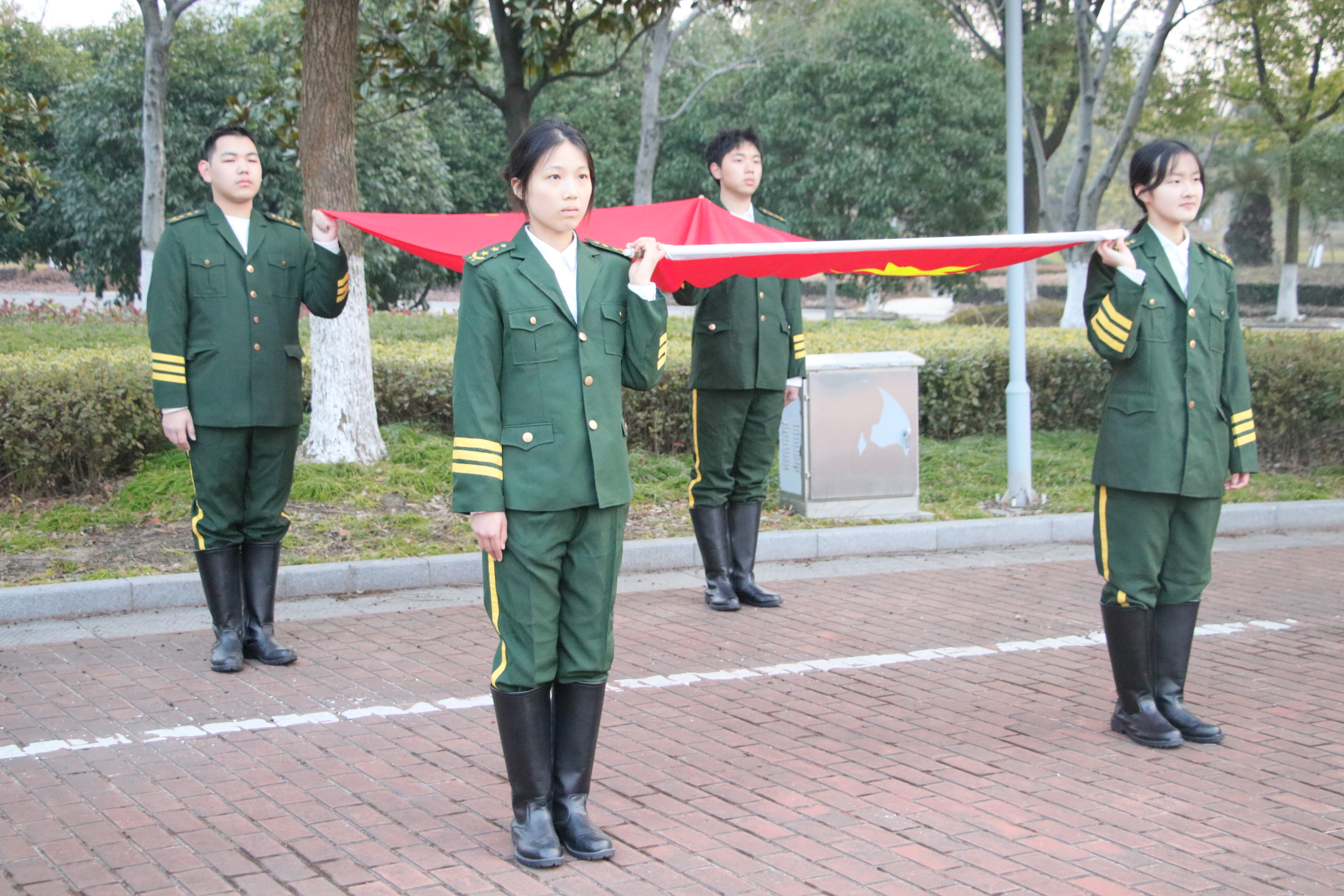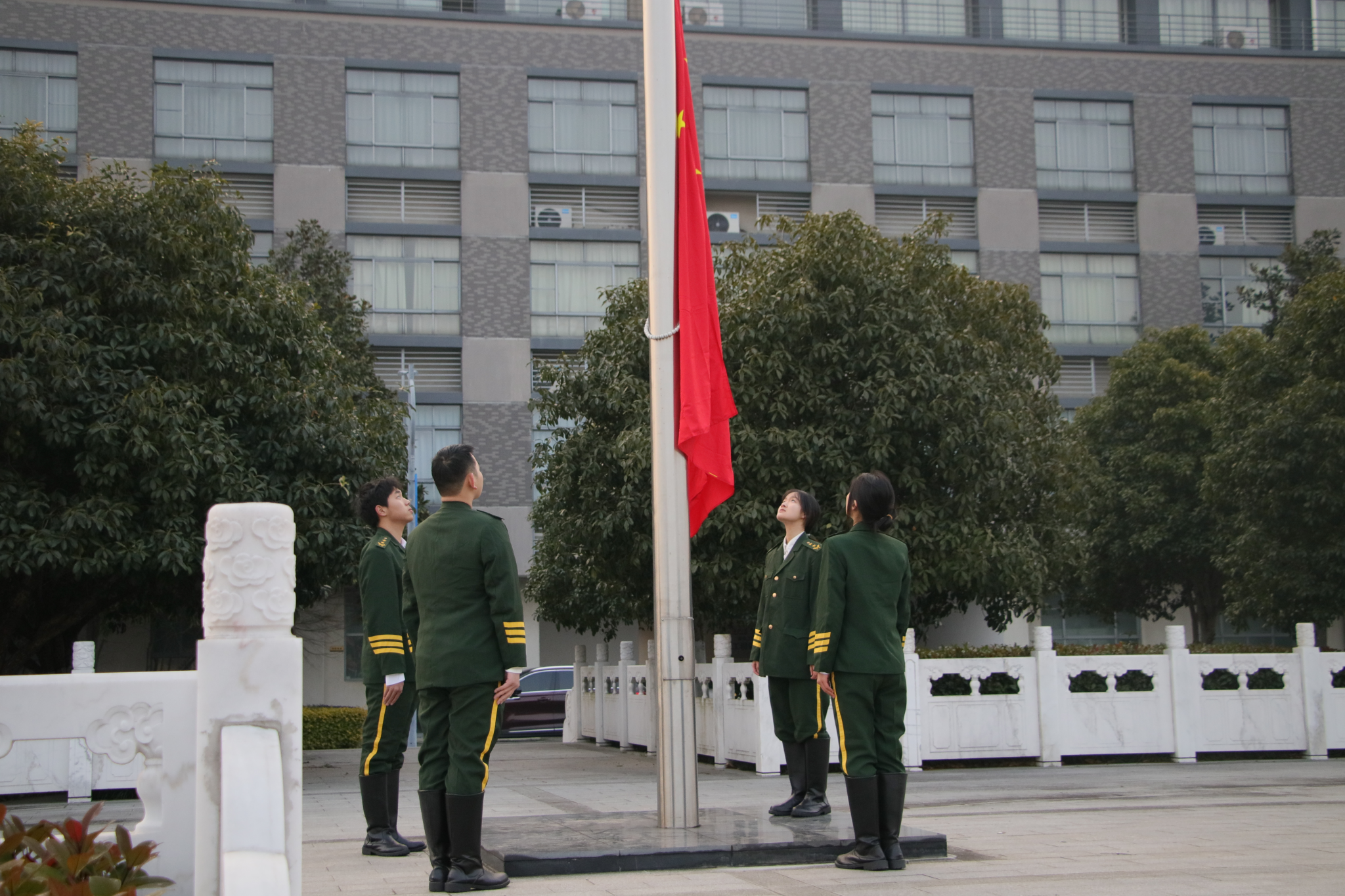 在肃穆庄严的国歌声中,鲜艳的五星红旗缓缓升起,在晨光中迎风飘扬。全体师生肃立,向国旗行注目礼,表达对祖国的无限崇敬与热爱。