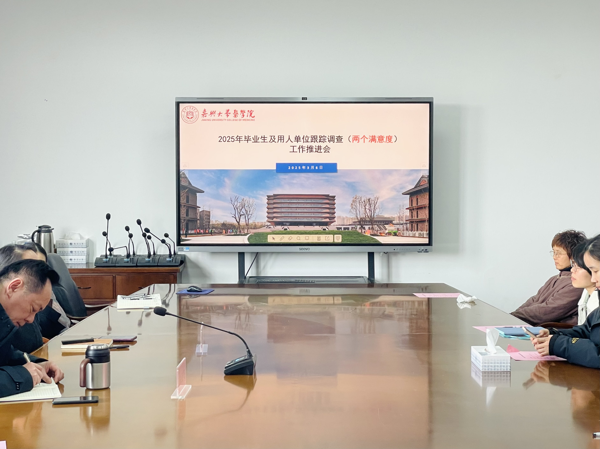 召开2025年毕业生及用人单位满意度跟踪调查工作推进会。学院党委书记陈云飞、党委副书记朱莹、学工办全体辅导员以及2020届和2024届毕业班班主任出席本次会议。