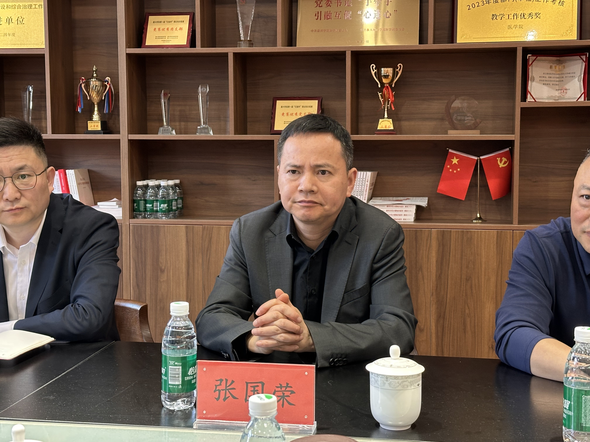 陈云飞书记对刘扬强一行的到来表示欢迎并介绍了学院的基本情况。校企双方围绕科研创新、共建生物医药联合实验室、合作开展新药研发、人才培养、实践教学等方面进行了深入的交流探讨。