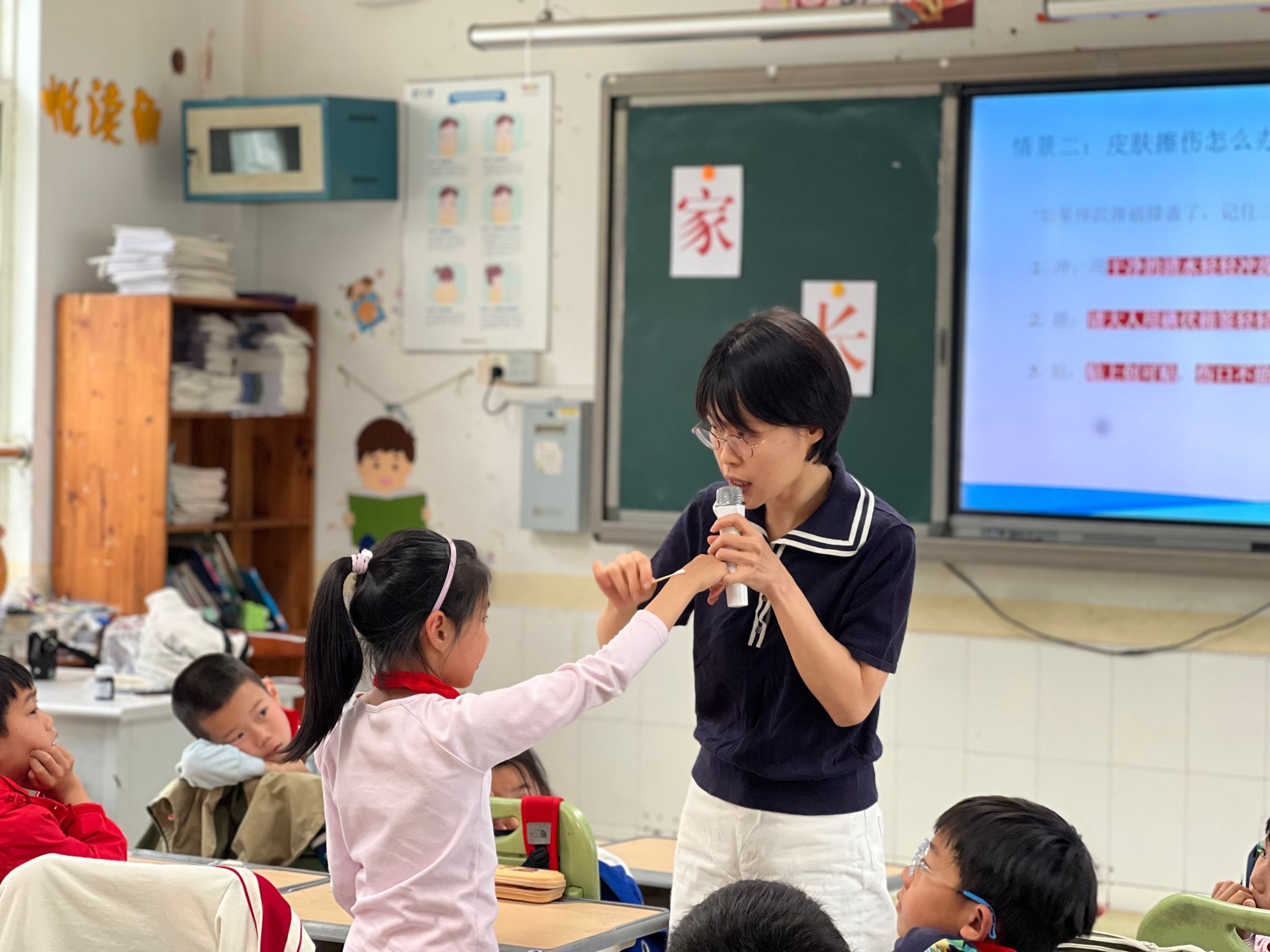 2025327日下午,医学实验中心联合药学系开展巾帼文明岗进校园活动,为秀洲实验小学二年级(1)班学生举行沉浸式生命安全教育课。这场以“‘救'在身边,守护成长”为主题的急救科普活动,通过情景化教学为孩子们筑起校园安全防护网。