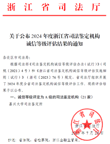 近日,浙江省司法厅发文公布2024年度浙江省司法鉴定机构诚信等级评估结果,欧美无码