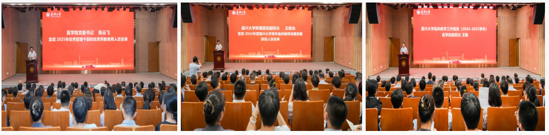 会议表彰了2024-2025学年实习基地优秀管理干部和优秀临床带教老师、2024年青年临床教师命题竞赛获奖人员,听取了2024-2025学年临床教学工作报告。