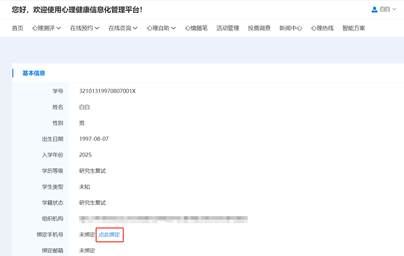 2.进入网页后,账号为身份证号,密码为出生日期(例:19900101。输入验证码,点击“登录”后,点击“我的”——“个人资料”,核对个人信息,并点击“绑定手机号”,进行个人信息绑定。