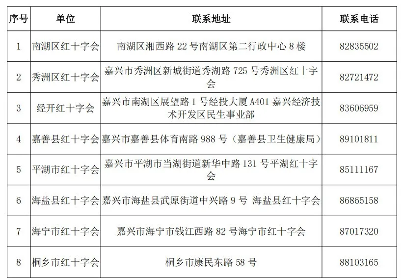 线下登记,请联系各区(县、市)红十字会,联系方式详见下表: